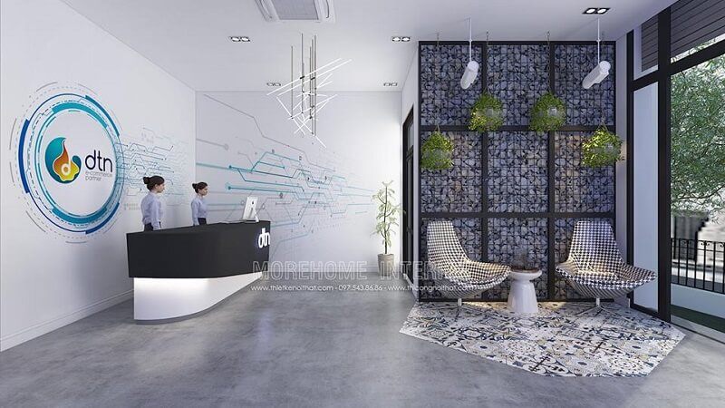 Trang trí sảnh lễ tân văn phòng công nghệ thông tin đẹp sử dụng