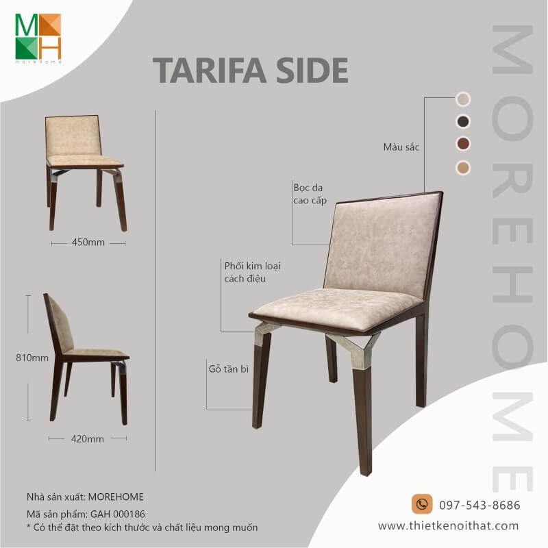 Mẫu ghế ăn có thiết kế vuông vức lạ mắt, với khung gỗ bằng gỗ tần bì phun sơn phối với kim loại cách điệu, đệm ngồi và đệm lưng được bọc da nhập khẩu cao cấp, phù hợp phòng ăn phong cách hiện đại