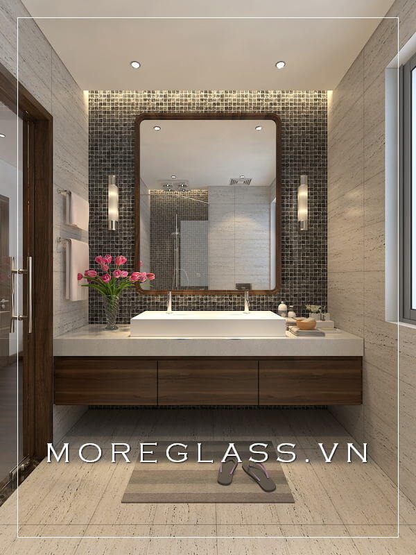 Giúp cho không gian đón nhận được ánh sáng hay luồng gió từ bên ngoài việc thiết kế cửa sổ kính phòng tắm hiện đại