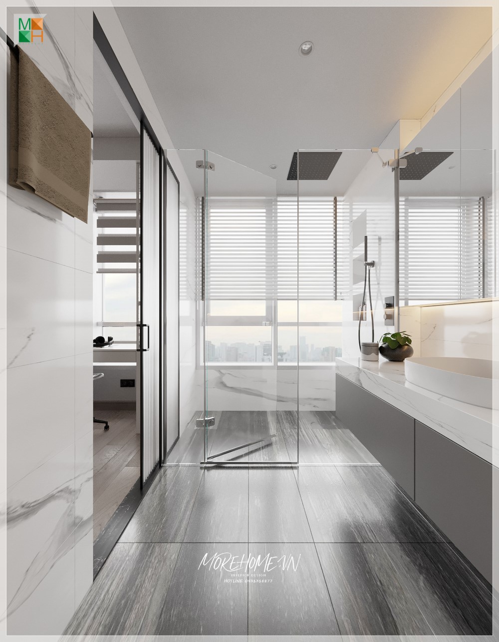 Phòng tắm căn hộ là một không gian sinh hoạt cá nhân tiện lợi và đẹp mắt, tạo nên một không gian sống thật thú vị.